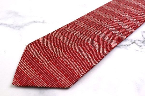 - 498円~ランセル 格子柄 フランス製 ブランド ネクタイ メンズ レッド 赤 良品