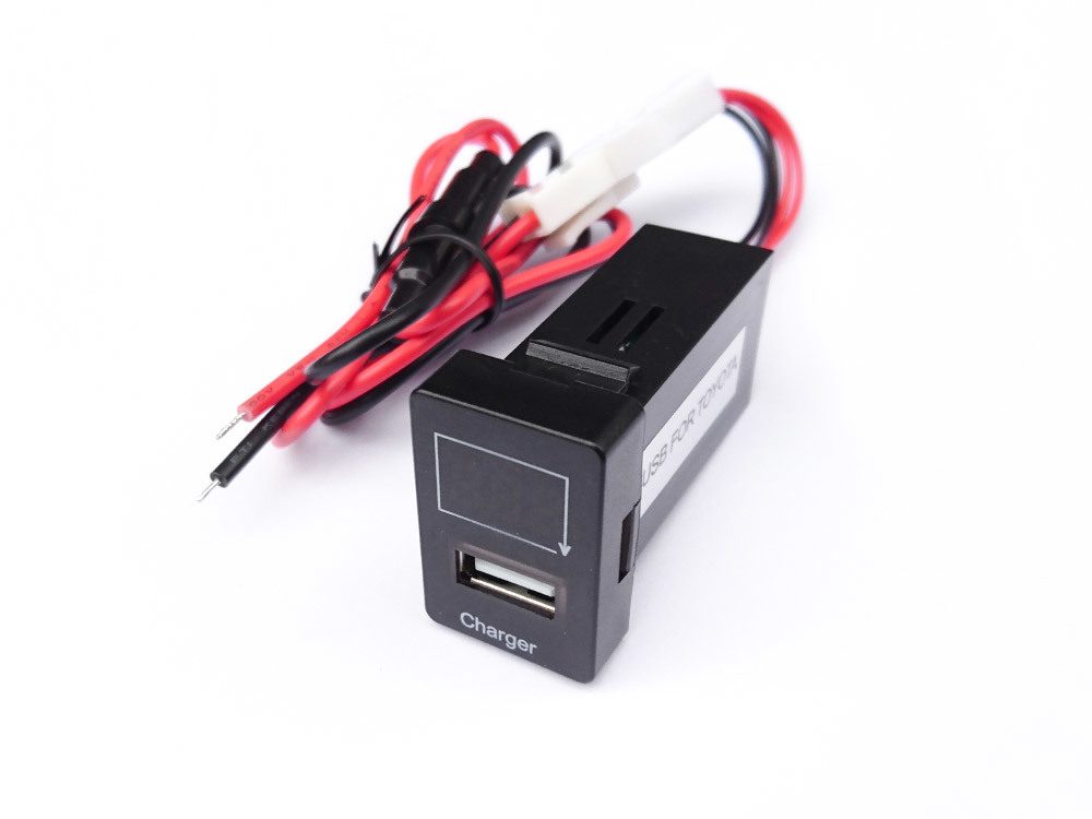 - トヨタ車用 スイッチホールカバー USBポート 電圧計/青LED付 車載 増設USBポート スイッチパネル 約33mm×23mm@