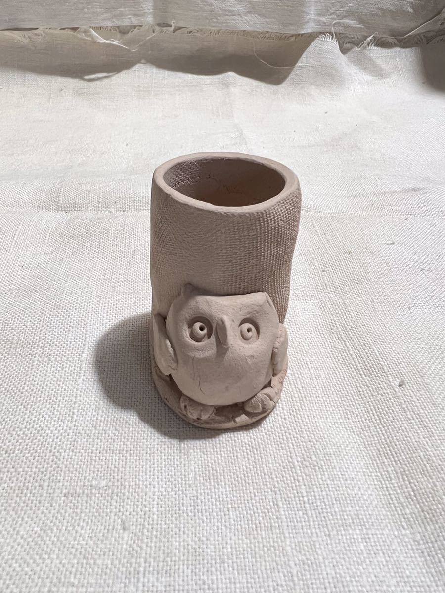 - ◆陶器製 幸せを呼ぶふくろうのペン立て◆A-3338