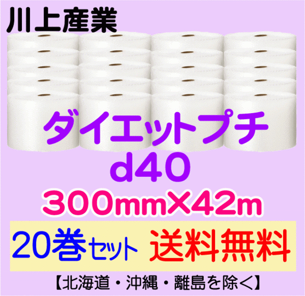 > 【川上産業 直送 20巻set 送料無料】d40 300mm×42m エアークッション エアパッキン プチプチ エアキャップ 気泡緩衝材