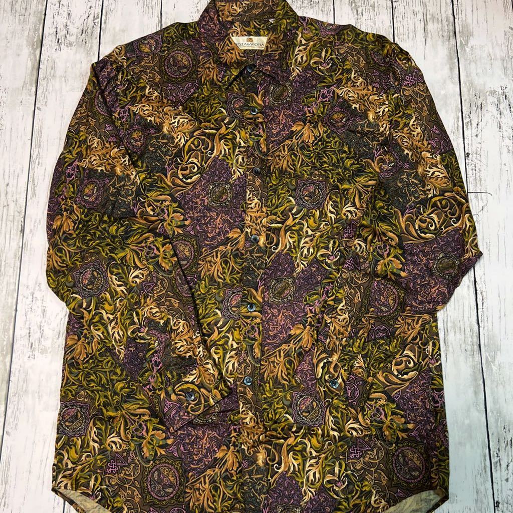 - ROZA&VIORA 総柄 柄シャツ レトロ アート ビンテージ 長袖シャツ レーヨン90% 毛10%