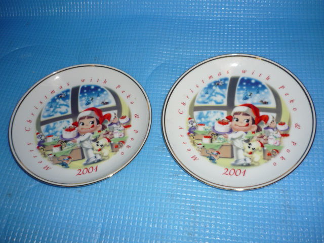 - E★非売品・未使用★不二家 ペコちゃん クリスマスプレート 2001年x2枚セット