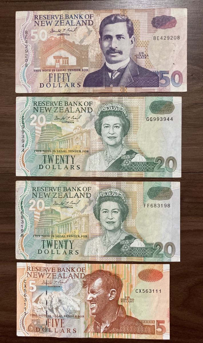 - ニュージーランド・ドル 旧紙幣 50ドル 20 ドル(2枚)5ドル エリザベス女王