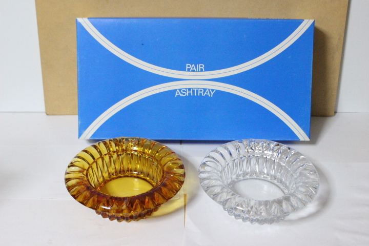 - ▲つ-485 灰皿 2個 未使用 亀井ガラス 大きさ/単品 箱)高5.5cm 横33cm 奥16.8cm 全重量1.25kg