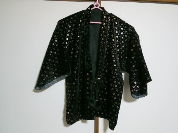 - 1点物 半纏 黒x金 花柄 はんてん ハンドメイド 手作り レトロ オリジナル 鬼滅の~