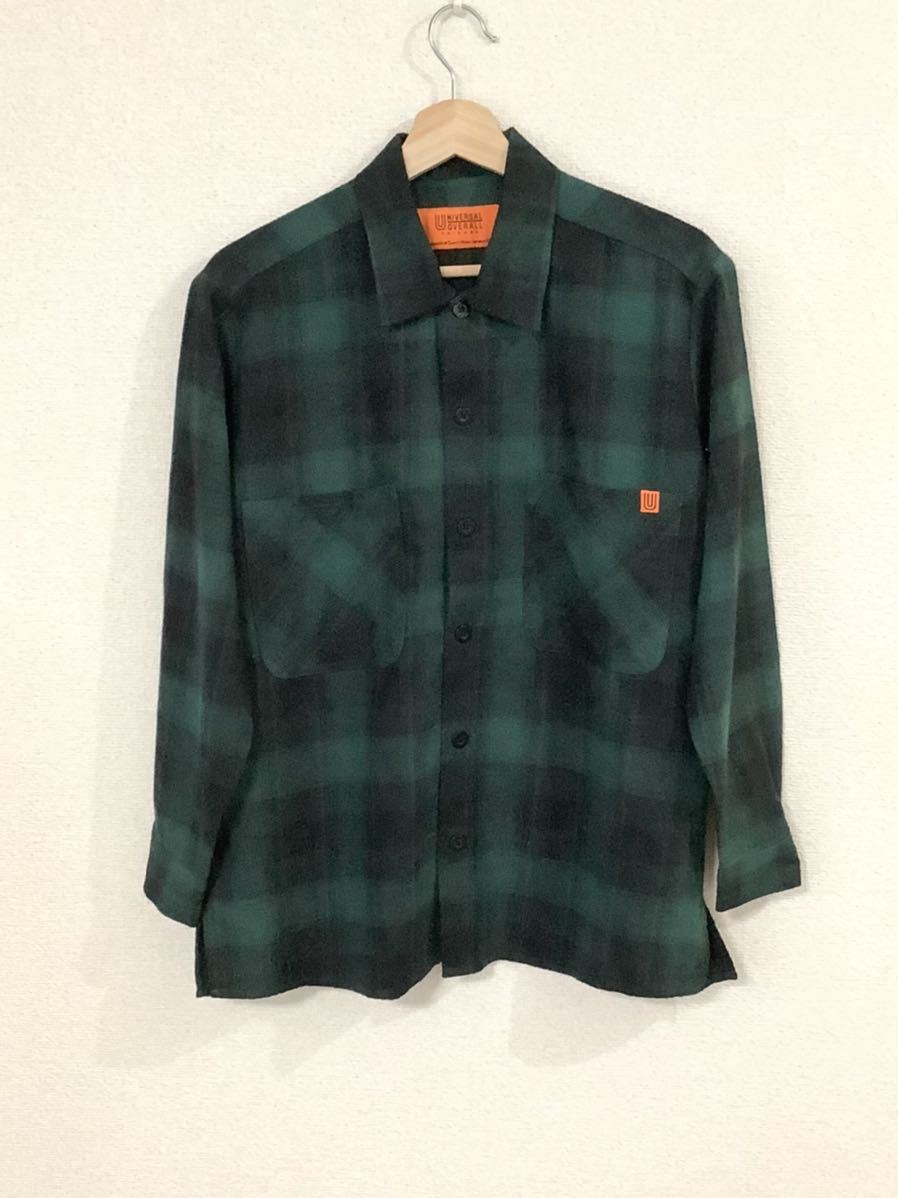 > UNIVERSAL OVRALL ユニバーサルオーバーホール シャドーチェック柄長袖シャツ コットンシャツ ワークシャツ 古着