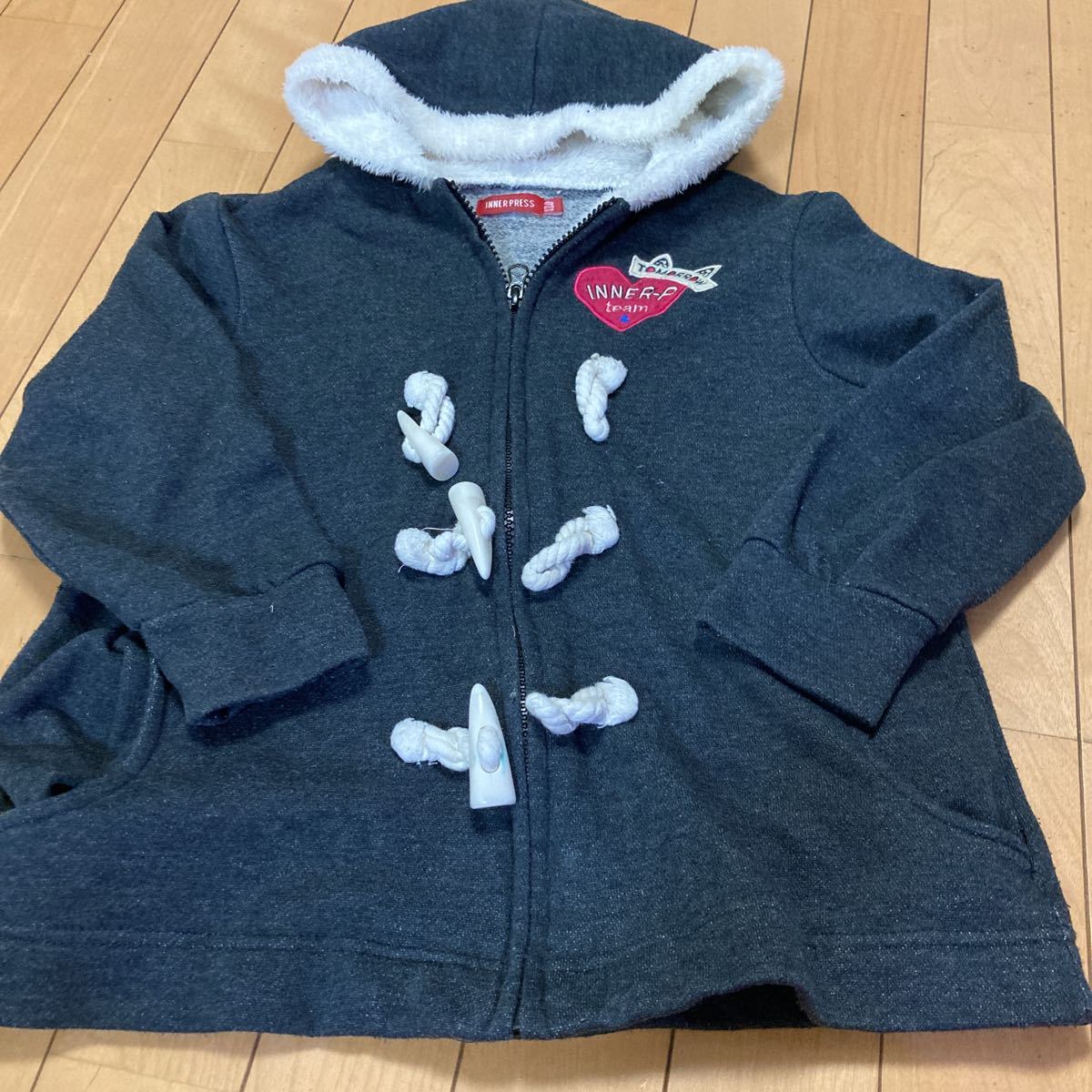 > 秋冬用★インナープレス 濃いグレー色の薄手のフードつきコート 120