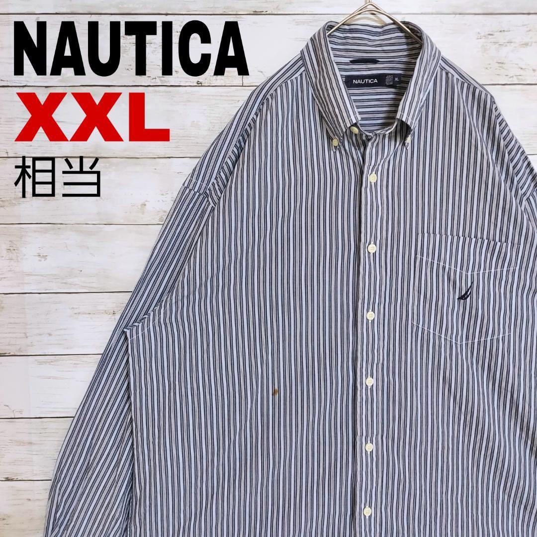 - x28 US古着 テンセル混 NAUTICA BD長袖 刺繍ロゴ ストライプ XXL相当 メンズ