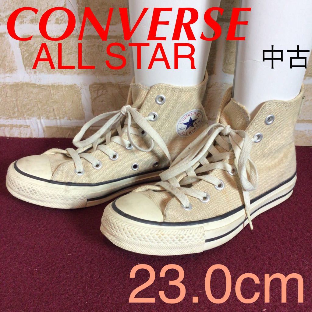 > 【売り切り!送料無料!】A-227 CONVERSE!ALL STAR!ハイカットスニーカー! 23.0cm!ヘンプ!ベージュ!麻素材!中古!