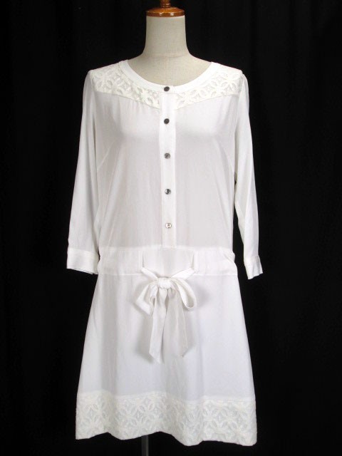> ロートレアモン LAUTREAMONT ワンピース レース ドロスト 七分袖 リネン混 38 白 レディース