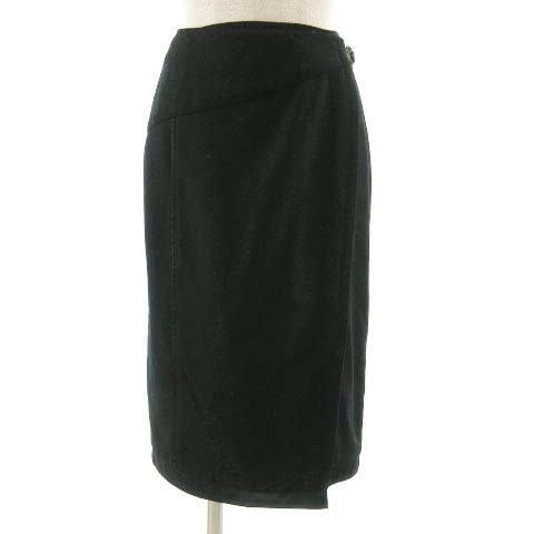 - リステア RESTIR スカート ラップスカート ミディ丈 切替え カシミヤ混 イタリア製生地 日本製 ブラック 黒 38 レディース