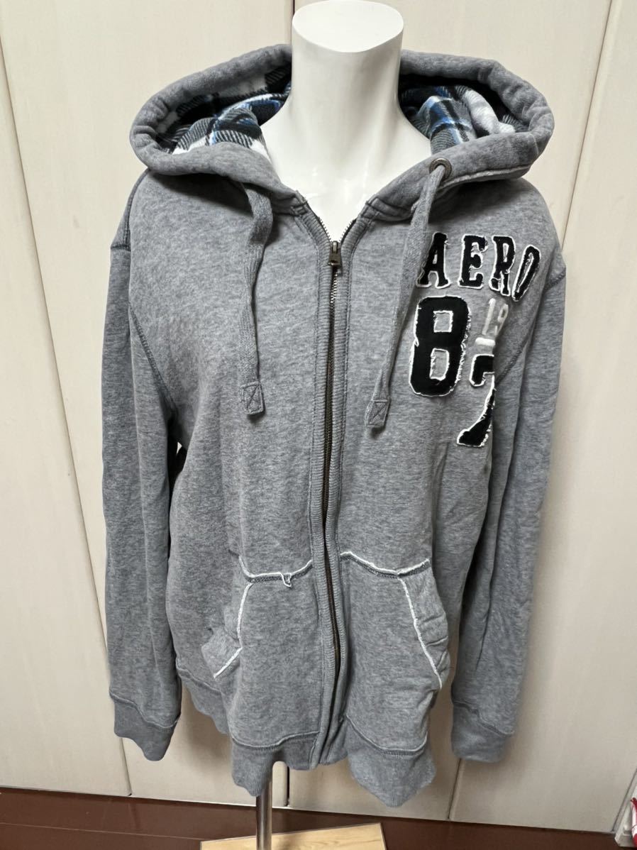 > エアロポステール 長袖スウェットパーカー 裏起毛 ロゴ グレー Lサイズ 3000円より値下げ