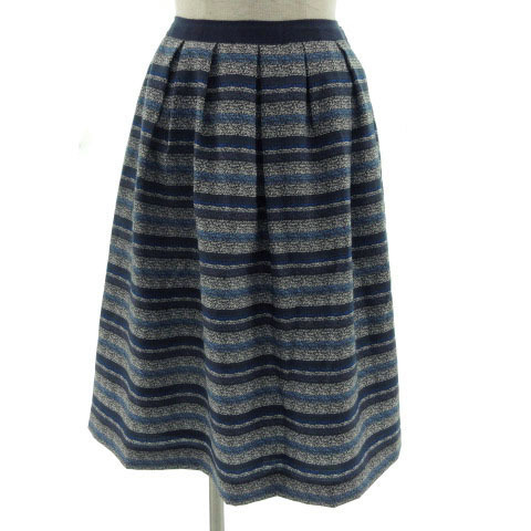 - エル ELLE スカート フレア ひざ丈 総柄 ボーダー ブルー 青 ホワイト 白 ネイビー 紺 38 レディース