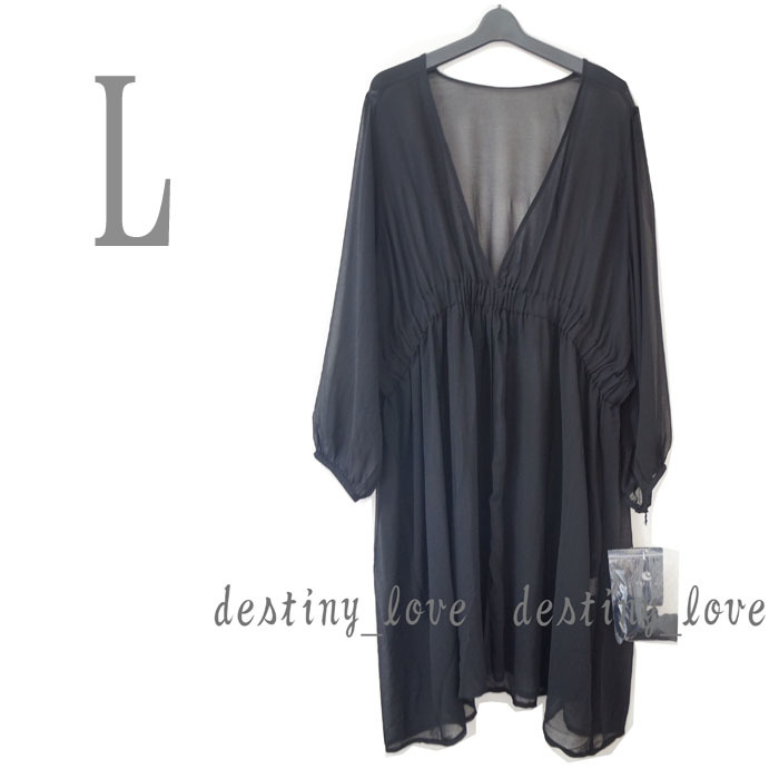 - ●新品/ロングカーディン/黒系/L/シフォン/透け感/レディース●f4653
