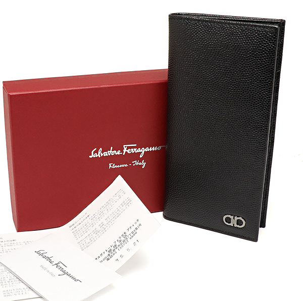 - 新品同様 サルヴァトーレフェラガモ ガンチーニ 二つ折り長財布 直営店購入品 669772 588846 ブラック レザー Salvatore Ferragamo