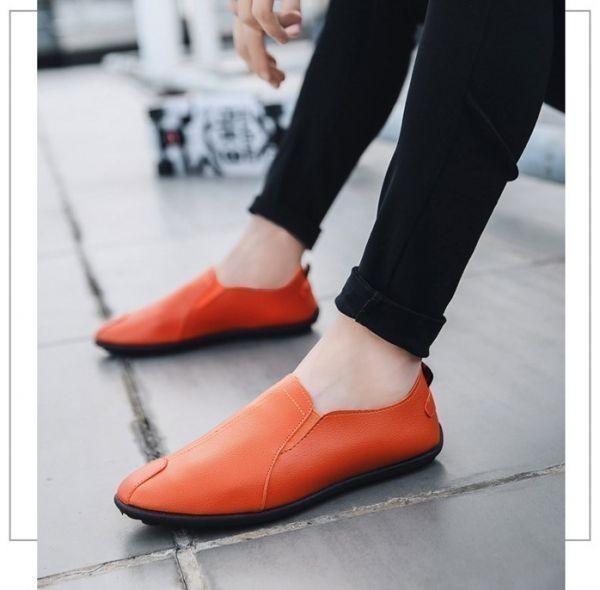- PU レザー スリッポン 【オレンジ 25.5cm】 sp4 メンズ カジュアル シューズ ドライビングシューズ 軽量 スニーカー 靴 おしゃれ
