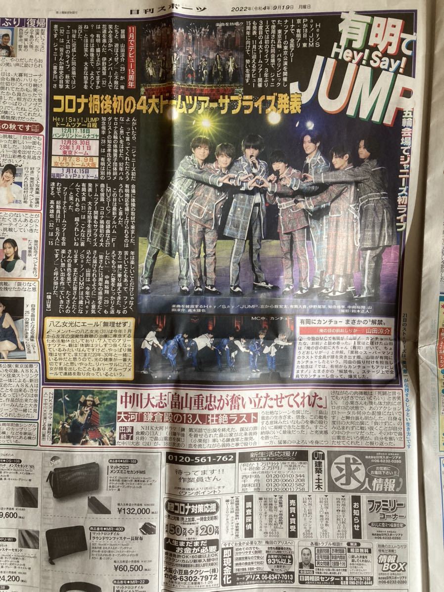 - Hey!Say!JUMP☆新聞記事 日刊スポーツ(2022年9月19日(月))