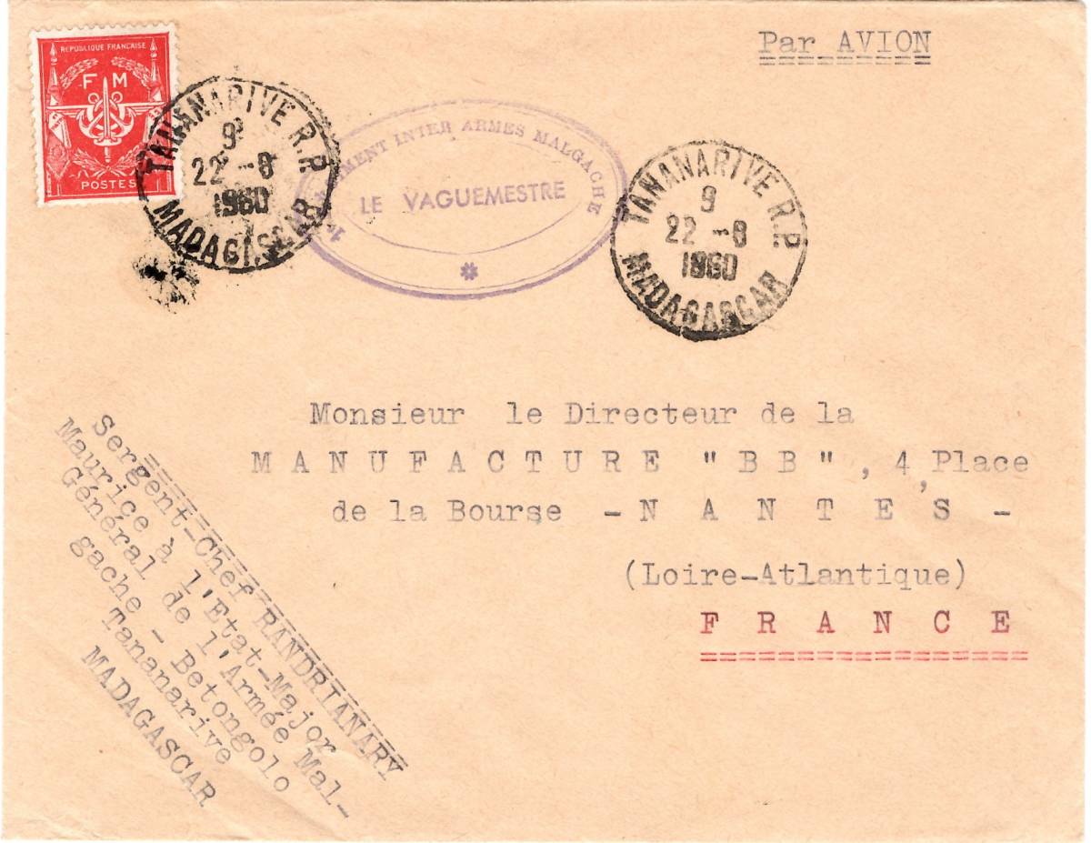 - 軍事郵便 1960 フランス軍 フランス軍事切手貼 マダガスカル 独立直後 アンタナナリボ カバー
