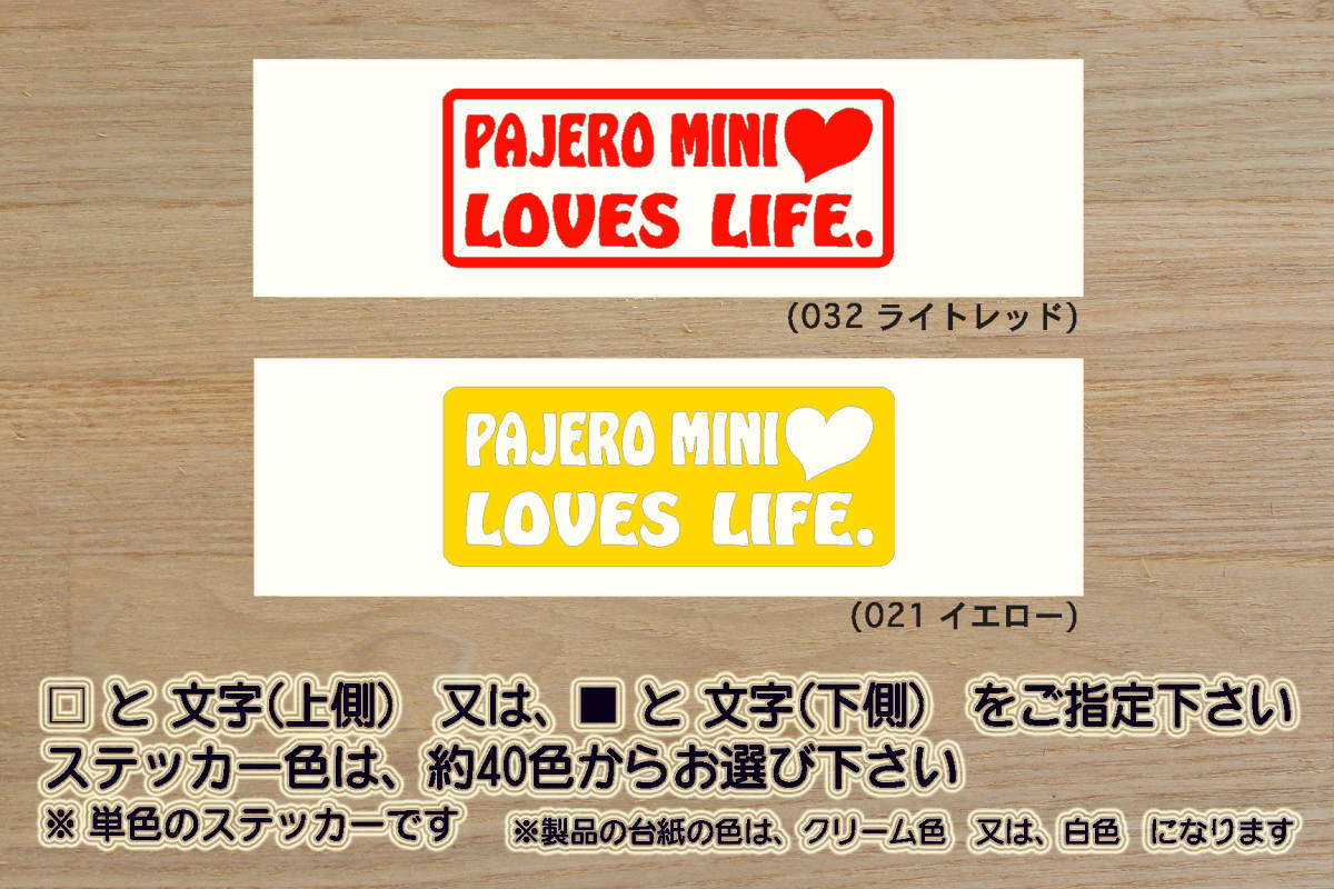 > PAJERO MINI LOVES LIFE. ステッカー パジェロ_ミニ_X_XR_VR_リミテッド_エクシード_ジュニア_スキッパー_H53A_H58A_改_カスタム_ZEAL三菱