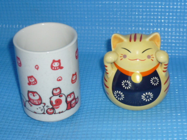 - a★未使用★ロフト限定 タヌキとキツネ 湯のみと金運アップグッズ 招き猫 陶器製貯金