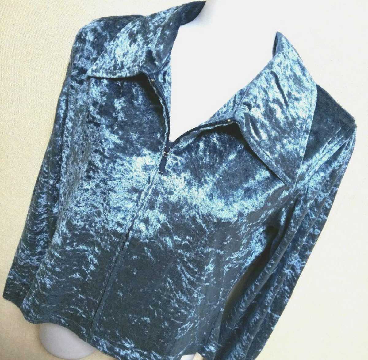 - ベロア風 シャツカットソー 光沢ブルー系色