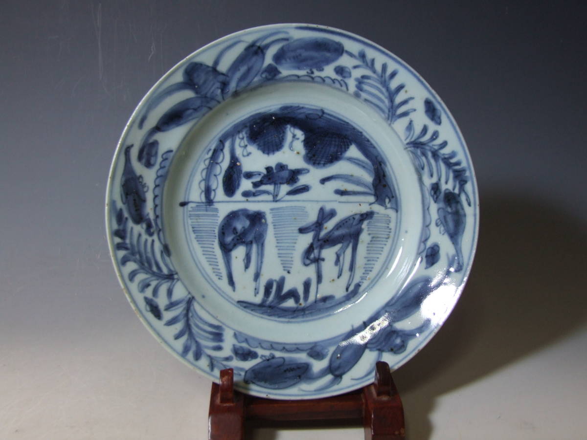 - ☆遊心☆◎古染付 鹿図 明末~清初 七寸皿 一客 1128