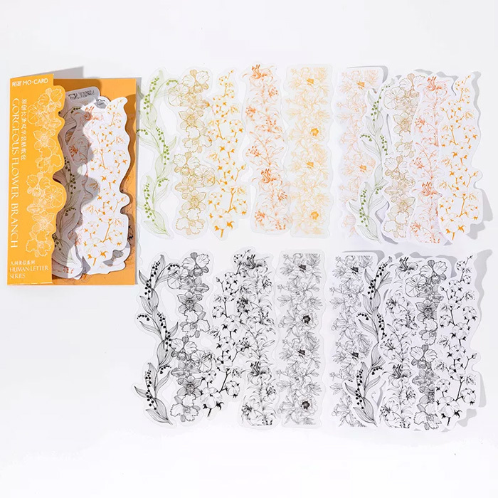 > 20枚 シール 花 蝶 月 おしゃれ アンティーク ビンテージ デコステッカー アンティーク調 コラージュ レトロ 1051-2
