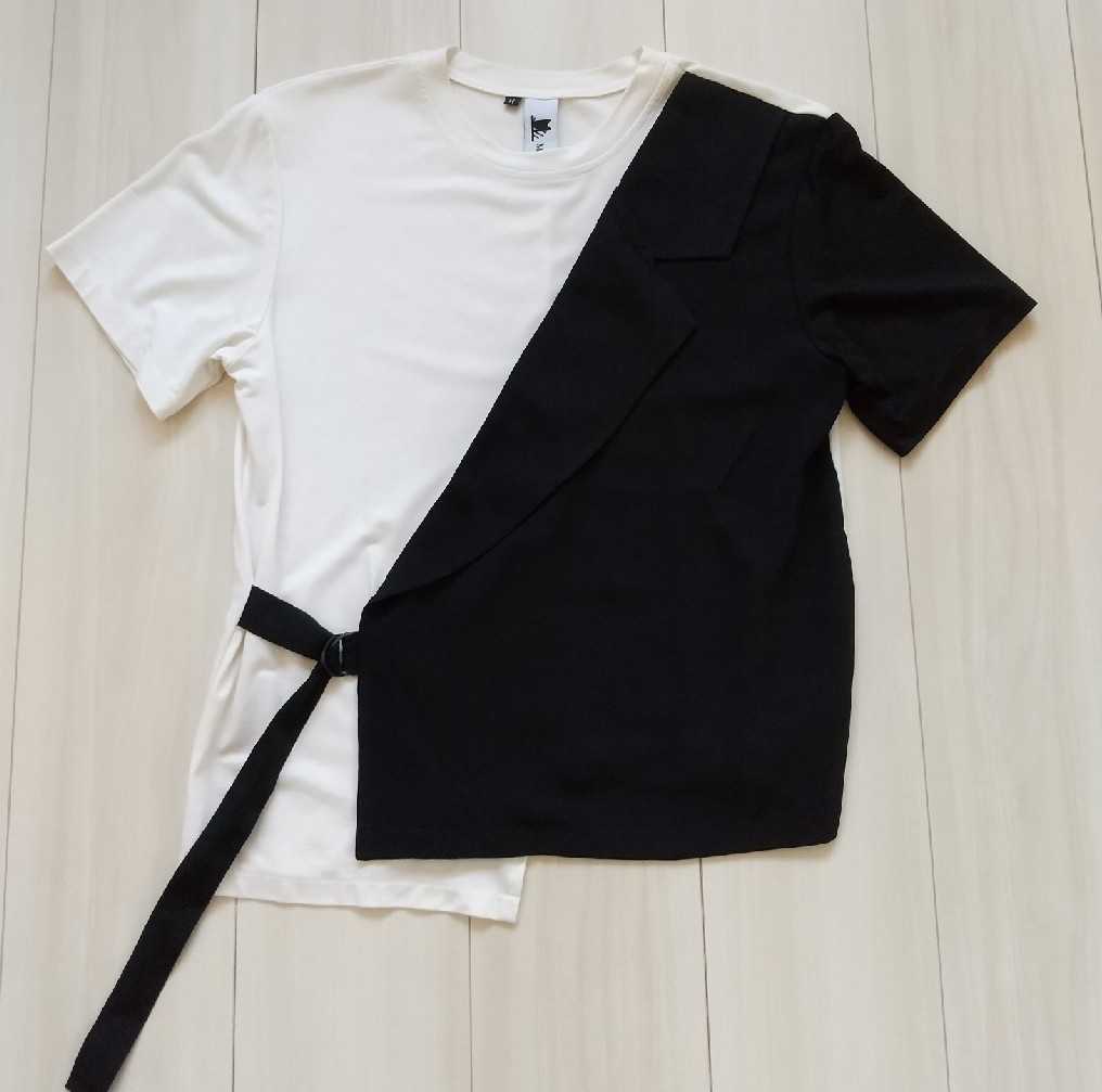 - ◎●(233)ジャケット襟ドッキング アシンメトリーTシャツ