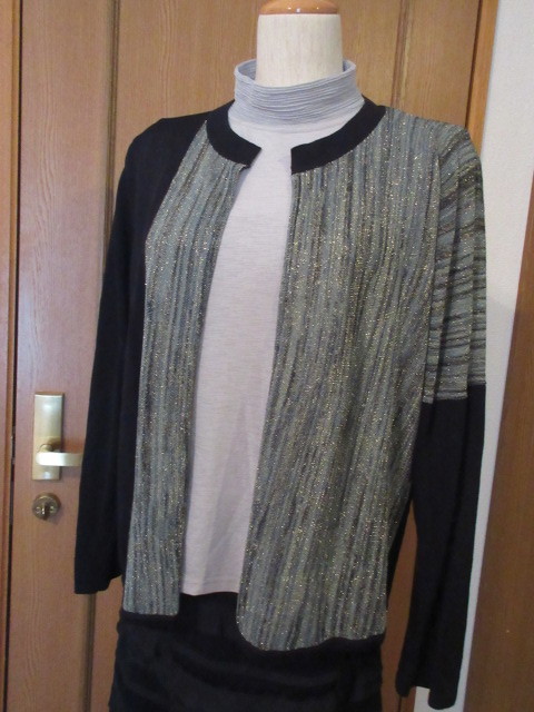 > D)■【GRACIEU】■伸縮/綿64%混■黒&ラメ入り青系グラデーションの素敵な高級ニット編み!■アシンメトリー/お洒落なカーディガン■