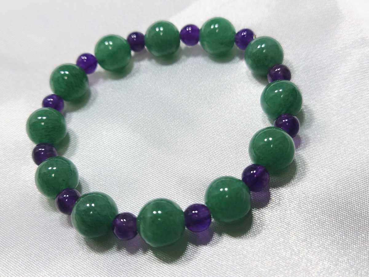 > グリーンメノウ アメジスト 天然石ブレスレット パワーストーンブレスレット 2月、8月の誕生石 良運、健康 管理.89