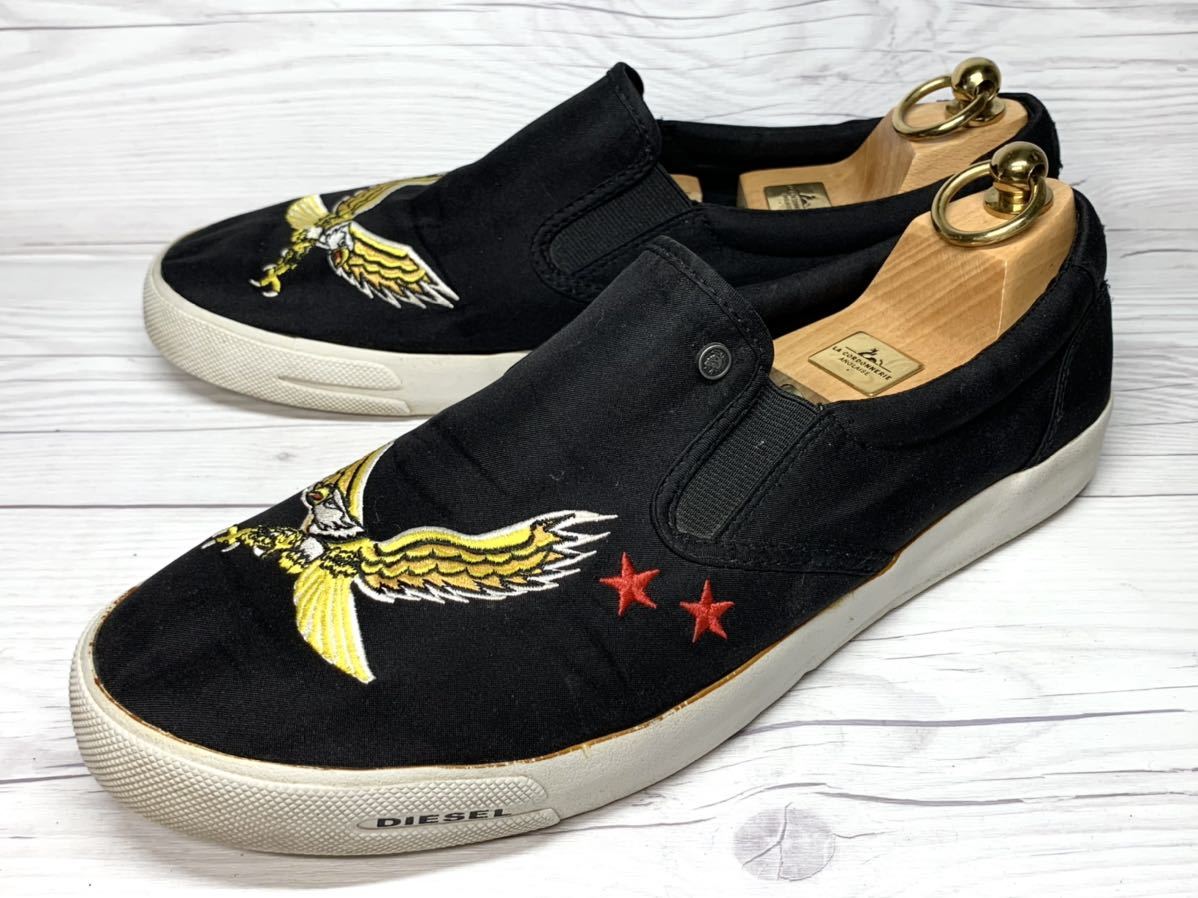 - 【即決】DIESEL メンズ 28.5cm ディーゼル スリッポン スニーカー くつ 靴 黒 ブラック カジュアル
