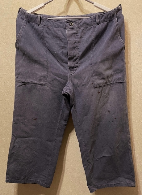 - フェード50sビンテージ希少ワークパンツXL~Lボタン式シンチバック短丈ボタンフライ退色ナス紺コットン50年代1950sユーロ ベイカー ベーカー