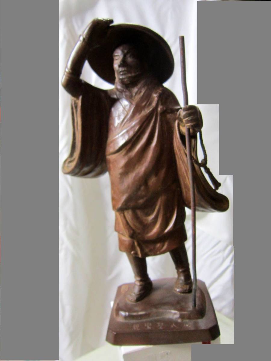 - 12.ブロンズ 親鸞聖人像 銘 純一郎作 31 cm
