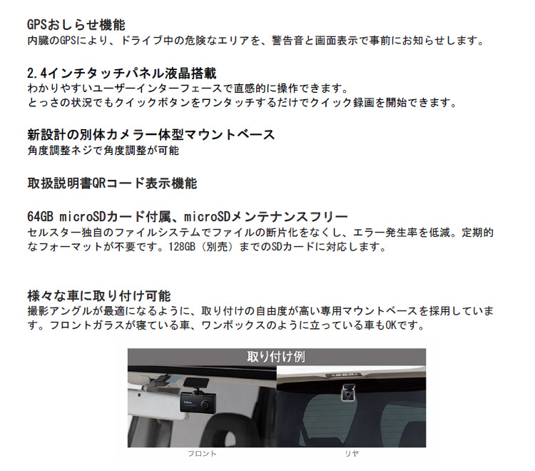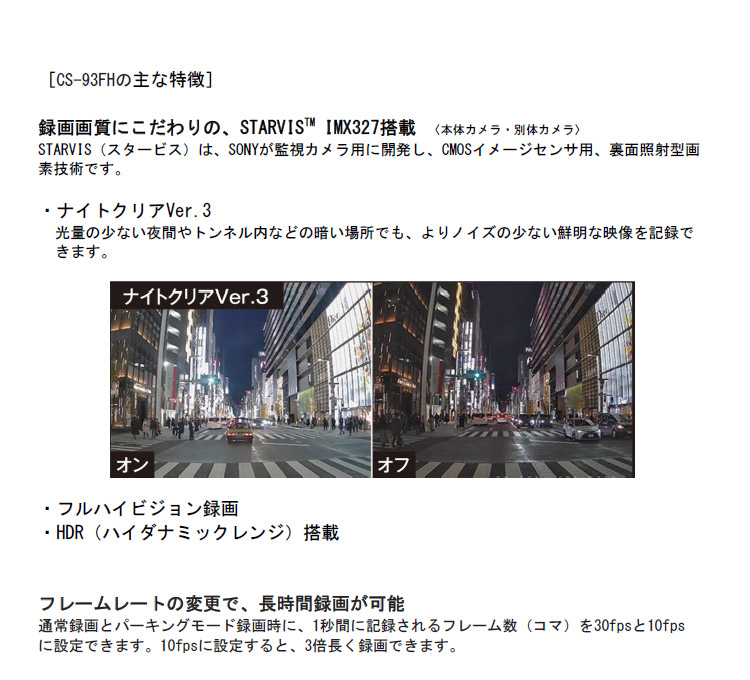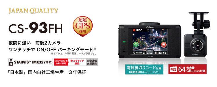 - 【取寄商品】セルスターCS-93FH+GDO-10前後2カメラドライブレコーダー駐車録画用常時電源コードセット