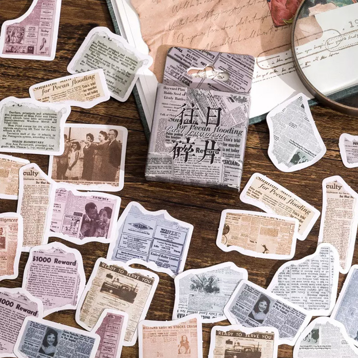 - 46枚 シール 英字新聞 英字 英語 おしゃれ アンティーク ビンテージ デコステッカー アンティーク調 コラージュ レトロ 1107