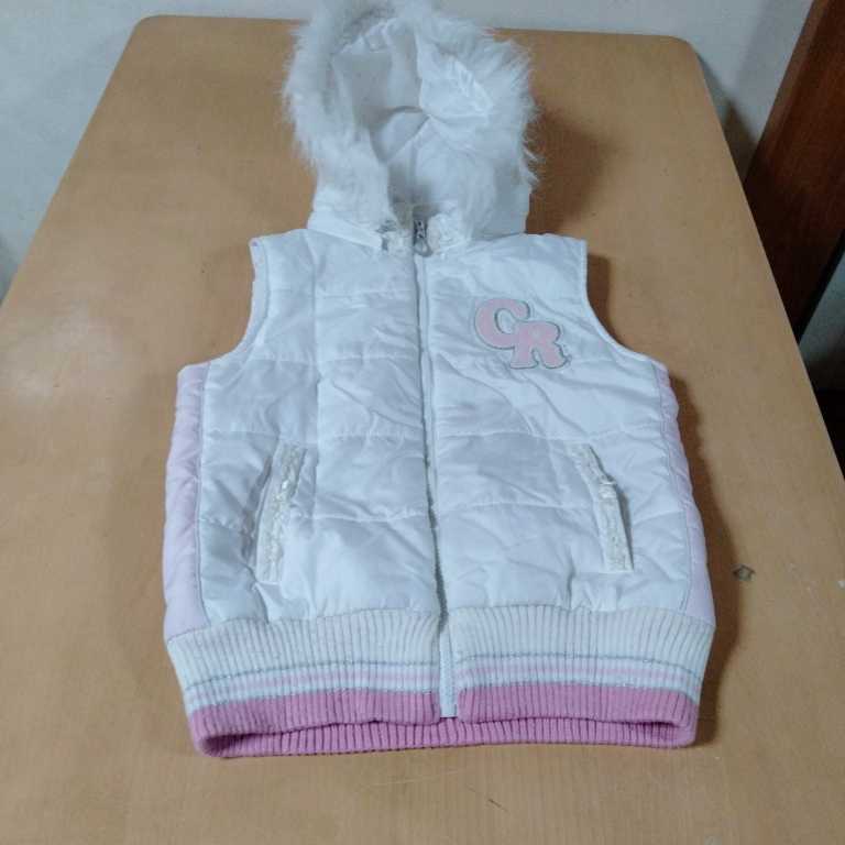 - 女のコ 150 中綿ベスト 白/ピンク 薄シミあり