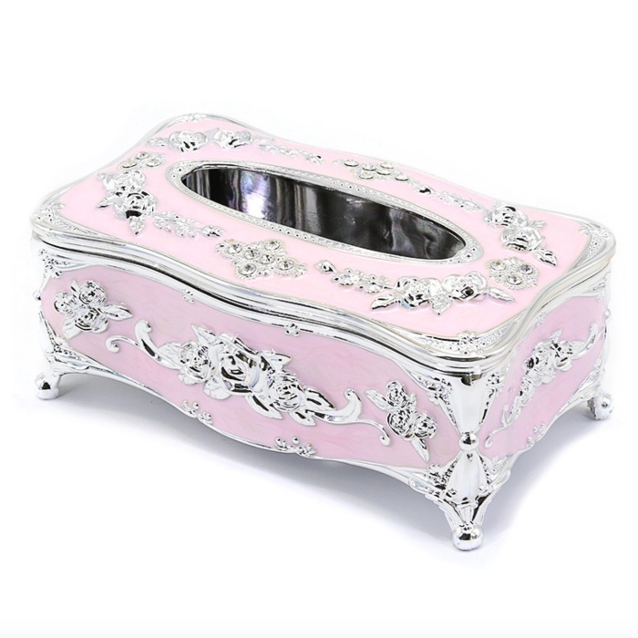 - 送料無料★新品 ゴージャスな薔薇デザイン 西欧テイストのティッシュカバーケース★ピンク銀