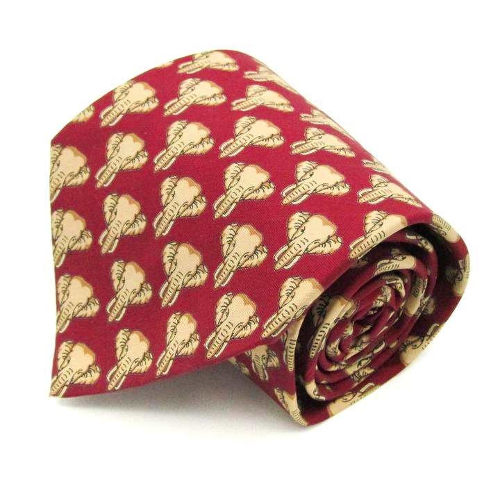 - ジムトンプソン 小紋柄 動物柄 象 高級 シルク タイ ブランド ネクタイ メンズ レッド 良品 JIM THOMPSON
