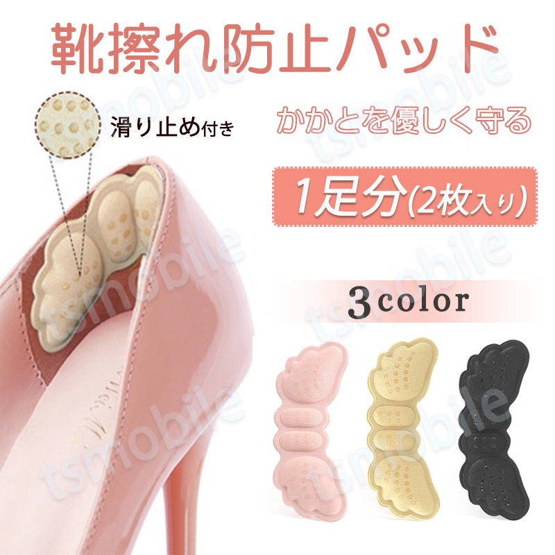 - 靴擦れ防止 パッド 1足分 天使の翼形 踵クッション かかとガード 靴のサイズ調整 痛くない ヒール スニーカー 靴に貼り付けだけ