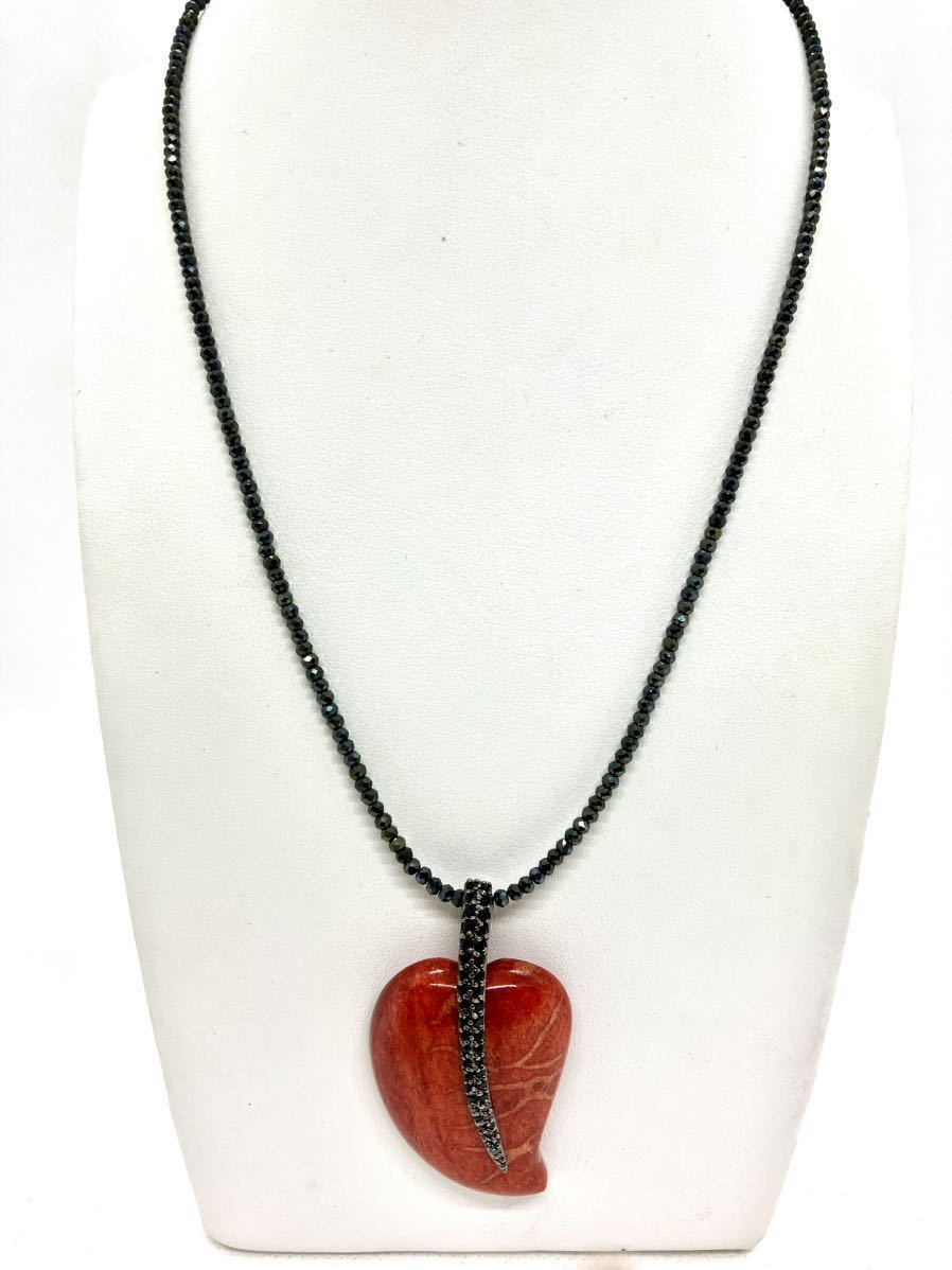 > 【新品】アフリカ珊瑚デザインネックレス*葉っぱ*リーフ*ブラックスピネル*三月の誕生石*パワーストーン*コーラル*大ぶり