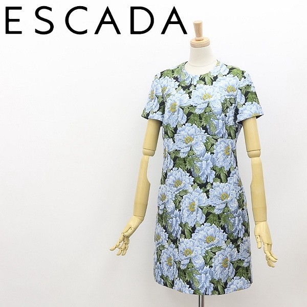 - 新品同様●ESCADA エスカーダ フラワー ジャガード ドレス ワンピース 34 国内正規品