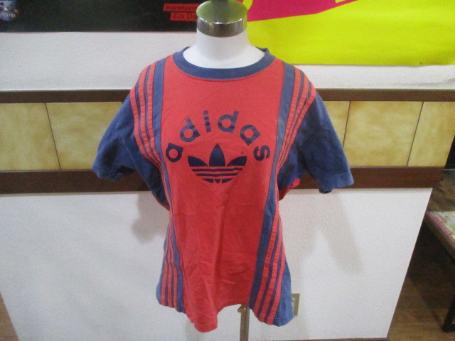 - adidas アディダス Tシャツ トレフォイル バックロゴプリント S-Mサイズ デサント 日本製 レッドXネイビーカラー ヴィンテージ