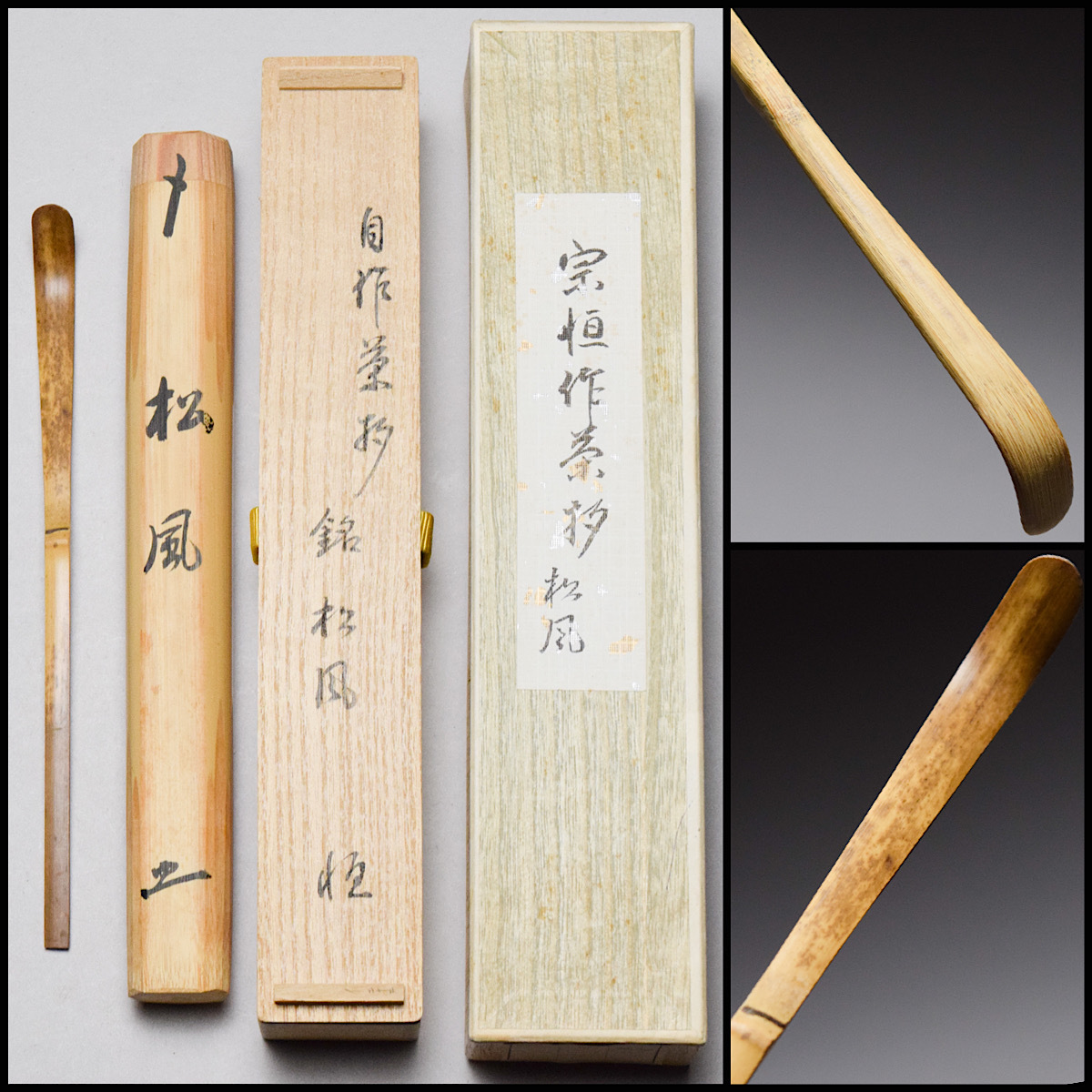 - 【八八八】宗恒 自作 茶杓 銘[松風] ◆共箱 紙箱 詰筒 茶道具 【y-178】