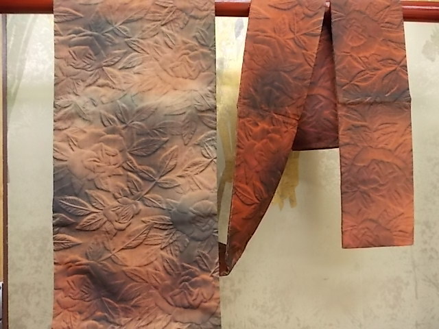 > きもの今昔4578 名古屋帯 正絹羽二重地九寸染名古屋帯 ふくれ織のような不思議な染