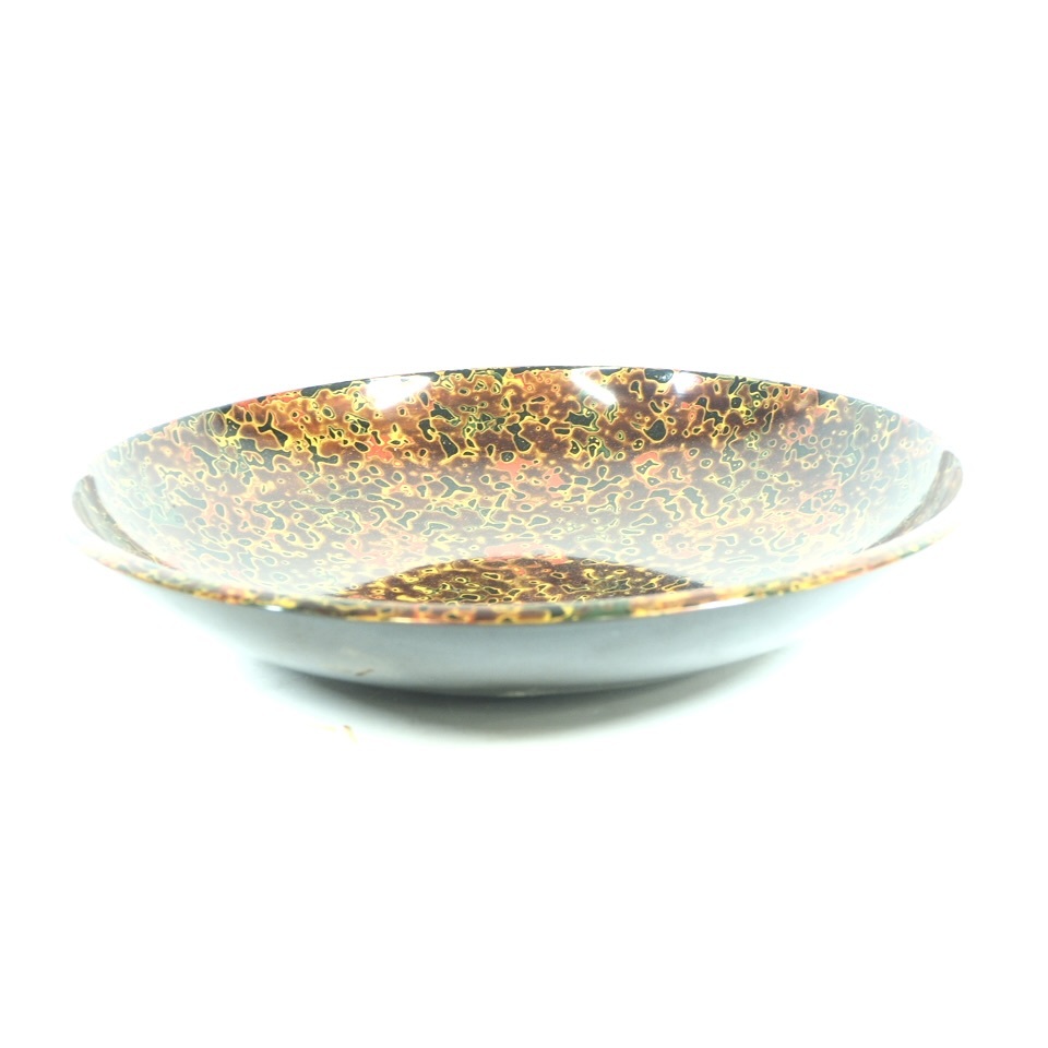 - 昭和ビンテージ 津軽塗漆器 唐塗り 八寸皿 菓子皿 直径24cm 高さ4cm 色彩豊かな抽象模様が特徴的 KYA412