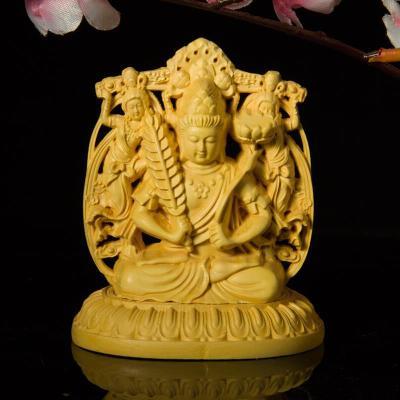 - 【十二干支お守り本尊】◆虚空蔵菩薩◆ 両面彫り柘植仏像 丑年/寅年 ナチュラル/天然木製/手作り/細工彫刻/プレゼント/開運風水厄除け