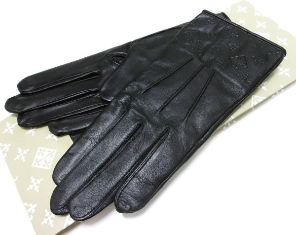 - 新品★Daily russet★デイリー ラシット★日本製レザーグローブ★モノグラム柄★ブラック★L★羊革★定価1.3万★手袋