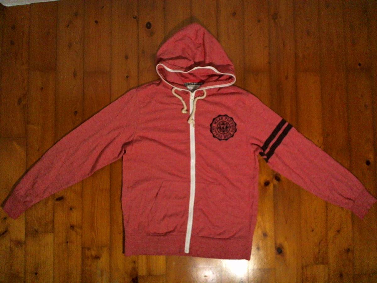 > ☆プルビアス【Pluvious】薄手スウェット ジップパーカ ジャケット ジャンパー L 赤系 霜降り クリックポスト可