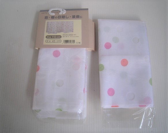 - 18N12.1-33 2枚まとめて 未使用品 ユニベール カフェカーテン オパールポルカ ホワイト 幅110×高45cm