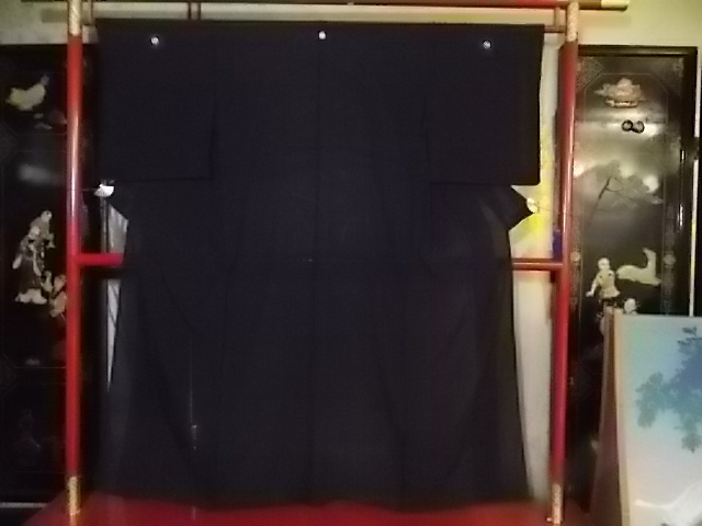 - きもの今昔4655 〈黒の礼装〉 夏用絽の喪服 正絹広衿 家紋「三ツ割菊」